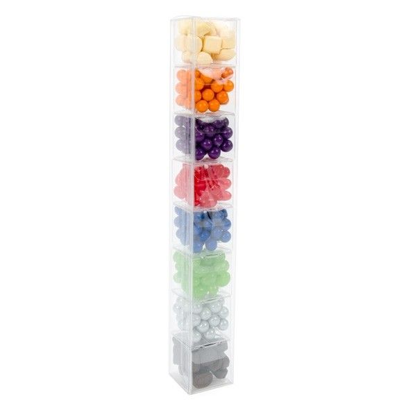 p>Nos coffret imbriqué est un excellent moyen d'emballer de sproduits tels que des chocolats, des échantillons ou pour coffrets-cadeaux. Ce coffret comporte huit boîtes de 4 x 4 x 4cm et a des dimensions extérieures de 4.1 x 4.1 x 31.1 cm. Idéal pour les mélanges de bonbons, épices artisant et bien plus encore. Fabriqués á partir de PET de haute qualité d'une épaisseur de 12 mil, ces coffrets-cadeaux sont conçus pour durer et ne se fisseront pas et ne deviendront pas cassants. Une conception de pli souple et un fond de verouillage automatique permettent un assemblage rapide. Salubrité alimentaire. Ce coffret NBS3 (1) PLB332 et (4) PLB103 boîtes.