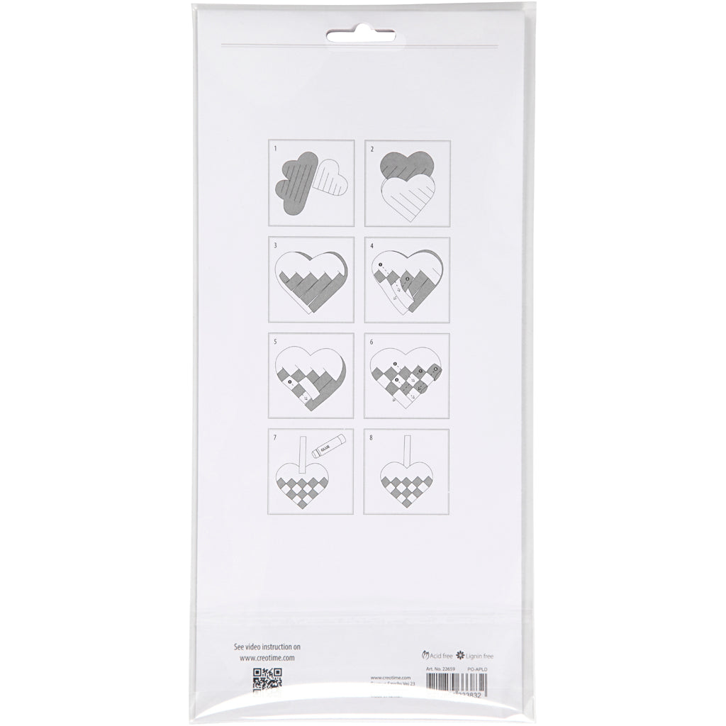 Coeurs tressés, dim. 13,5x12,5 cm, rouge, blanc, 8 set/ 1 Pq. [HOB-22659]