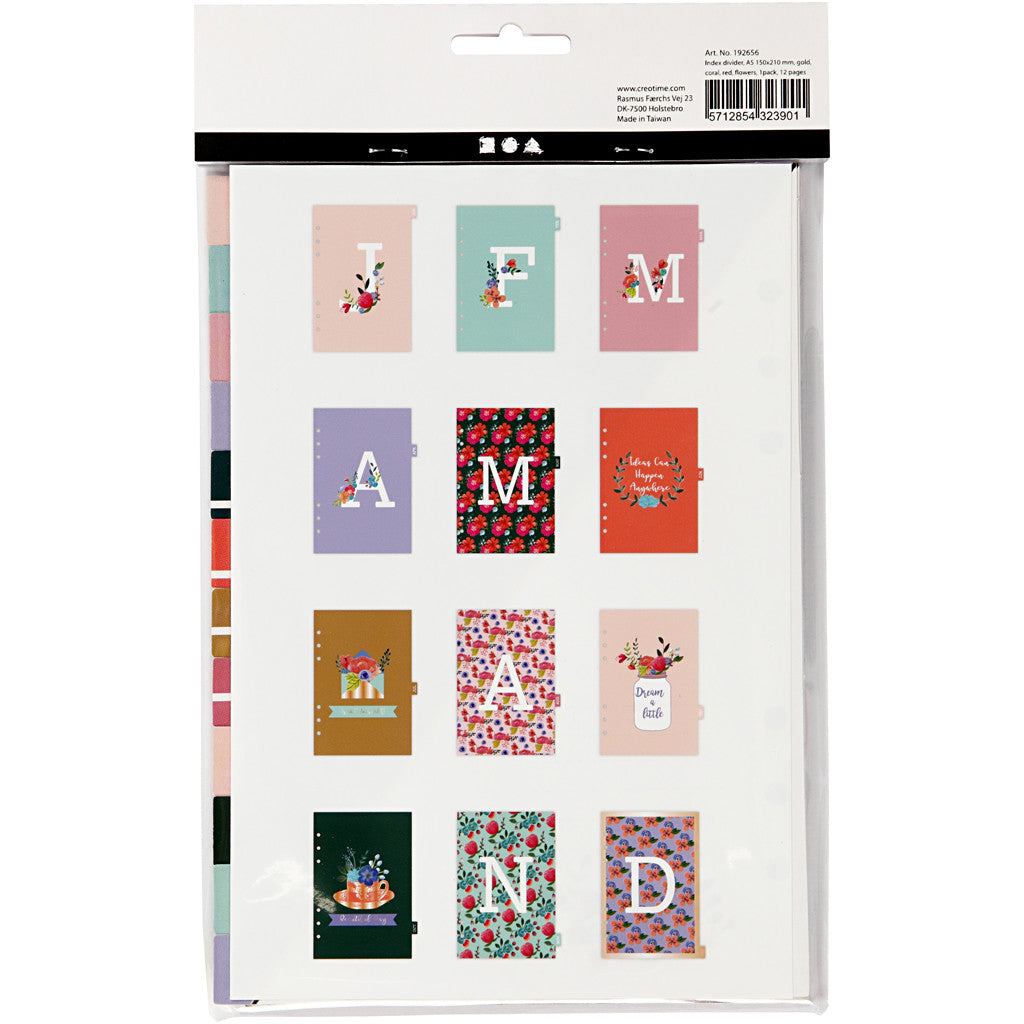 Intercalaires décoratifs avec du papier cartonné imprimé à 6 trous pour séparer les 12 mois. Parfait pour un journal de voyage ou créatif. Les intercalaires sont assortis aux housses de calendrier 192648-192651