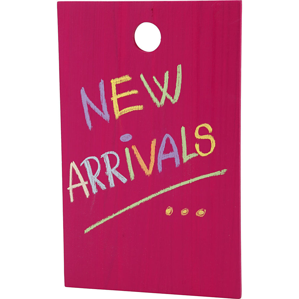Lastra di legno chiaro con anello per appenderla. Può essere usata come cartello
