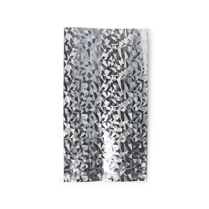 Le borse piatte termosaldate sono un'ottima soluzione di imballaggio per tutti i tipi di articoli. Questi sacchetti olografici non sono diversi, ma sono molto carini e unici. SVP35HHI misura 7,6 x 14 cm ed è realizzata in materiale VMPET da 65 micron, sicuro per gli alimenti, per un'elevata barriera protettiva. Queste buste sono ideali per confezionare fondi di caffè, miscele, cioccolato, sali da bagno, cera fusa e carte collezionabili. Le buste argentate opache hanno un motivo geometrico a "gelato" e sono ideali per bomboniere, regali, pacchetti sorpresa e altro ancora. Le buste hanno un'estremità aperta per facilitare il riempimento e possono essere sigillate a caldo. Il fondo e la cucitura posteriore garantiscono una maggiore resistenza. Le tacche di strappo sono posizionate su entrambe le estremità per facilitare l'apertura da parte dell'utente finale.