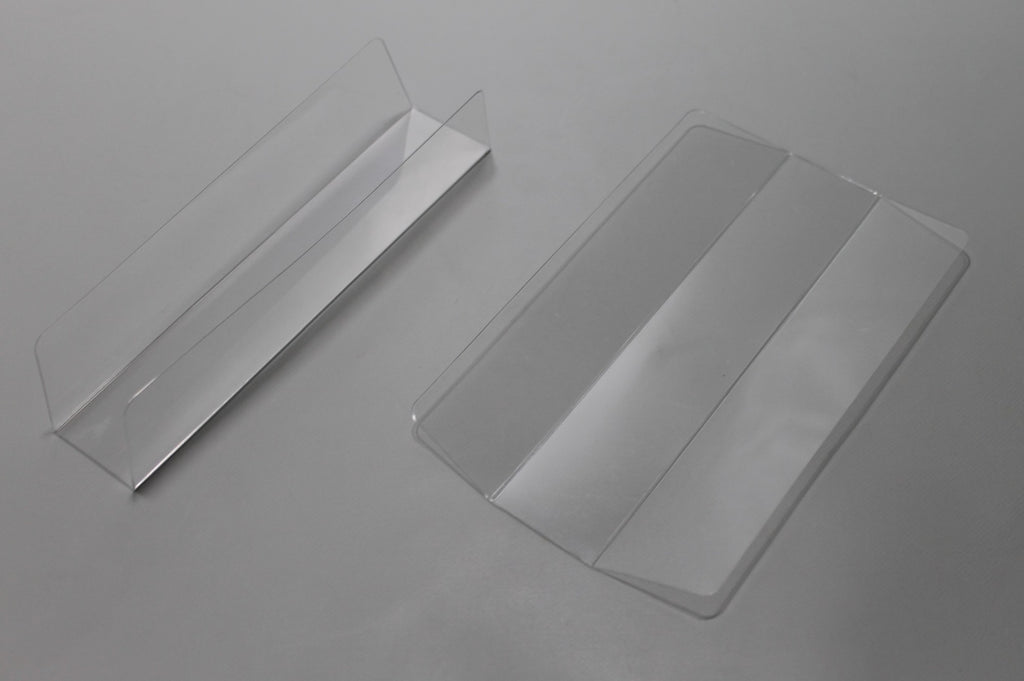 Die transparenten Einsätze sind aus hochwertigem, antistatischem 300-Mikron-Material hergestellt und von der FDA (Lebensmittelbehörde) für den direkten Kontakt mit Lebensmitteln zugelassen. Außerdem sind die Einsätze frei von Säuren und Lignin, also für Archivierungszwecke geeignet.
