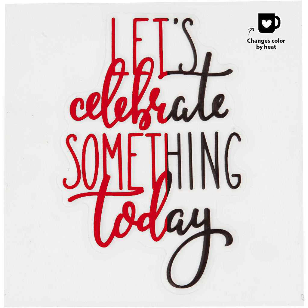 Zum Verzieren von Porzellan, Glas, Metall etc. Transparenten Schutzfilm entfernen und das selbstklebende Motiv auf das Objekt reiben. Durch Hitze - z. B. heißes Getränk - ändert sich die Stickerfarbe von Schwarz zu Rot - nicht spülmaschinengeeignet