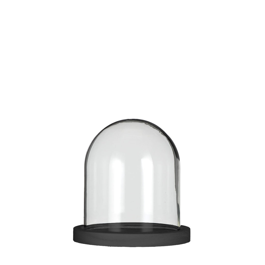Glasglocke mit schwarzem Holzsockel