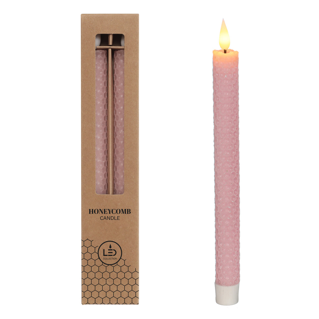 LED-Honigwabenkerze Ø2.2 h. 25cm rosa (Satz 2 Stk.) [IFS-32684]