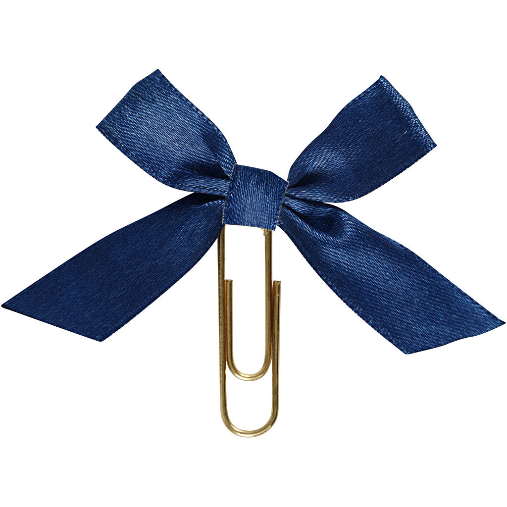 Vergoldete Metallklammer mit Schleife aus Satinband - als effektvolle Deko auf Karten, Einladungen, Geschenken, Scrapbooks, Planern etc