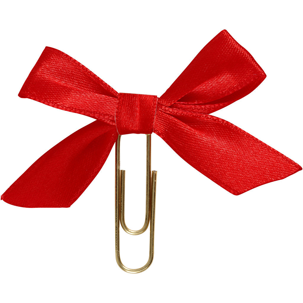 Vergoldete Metallklammer mit Schleife aus Satinband - als effektvolle Deko auf Karten, Einladungen, Geschenken, Scrapbooks, Planern etc
