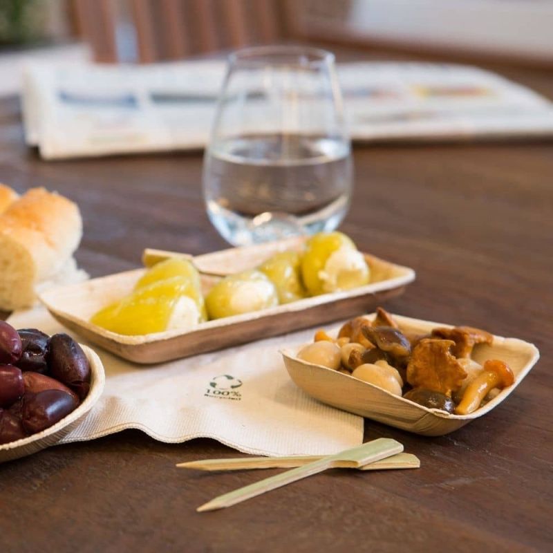 Palmblattprodukte können mit der Zeit weich werden, deshalb empfehlen wir, die Produkte nur für den sofortigen Verzehr zu verwenden und nicht für die Aufbewahrung von Lebensmitteln über einen längeren Zeitraum.