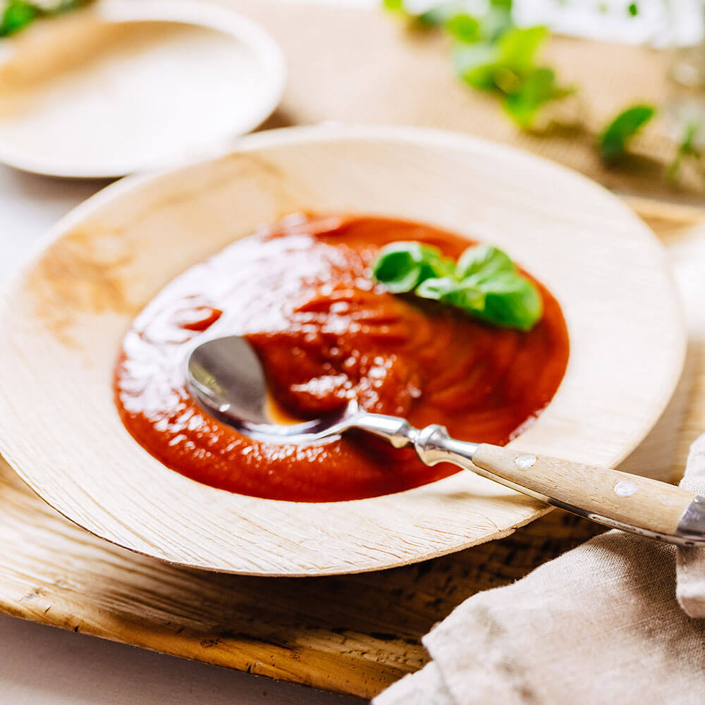 Die Teller sind sehr robust und haben ein natürliches Aussehen. Das Material ist vollständig biologisch abbaubar.